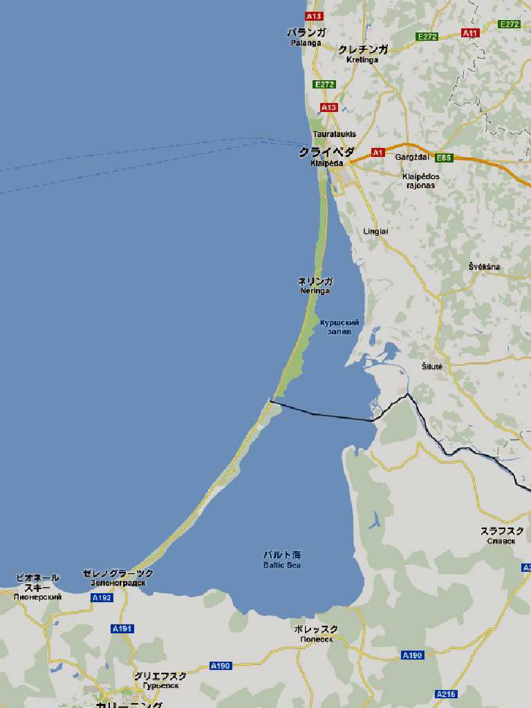 クルシュー砂州は全長98kmの大規模な砂州で日本三景の天橋立の約30倍の大きさとなる